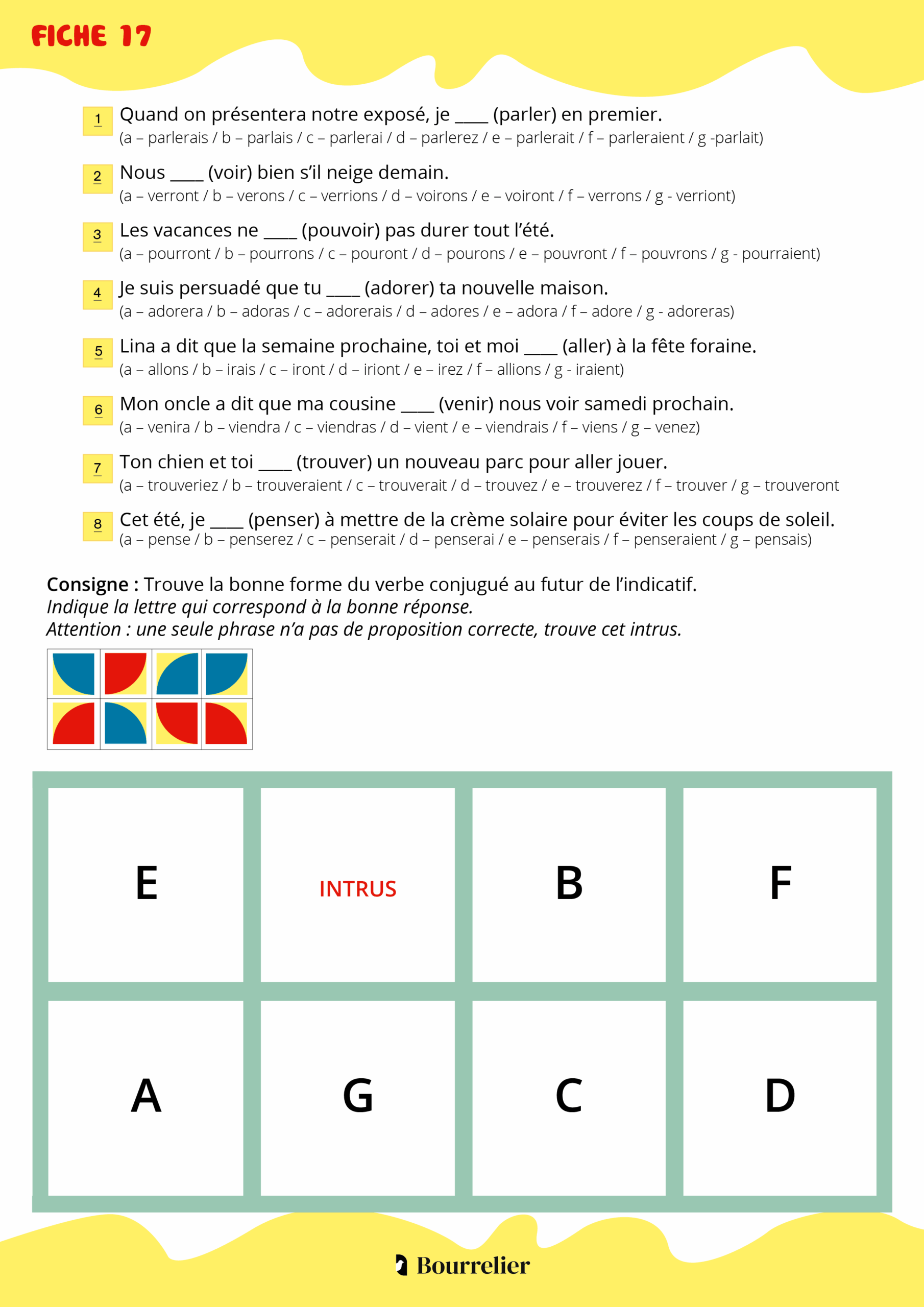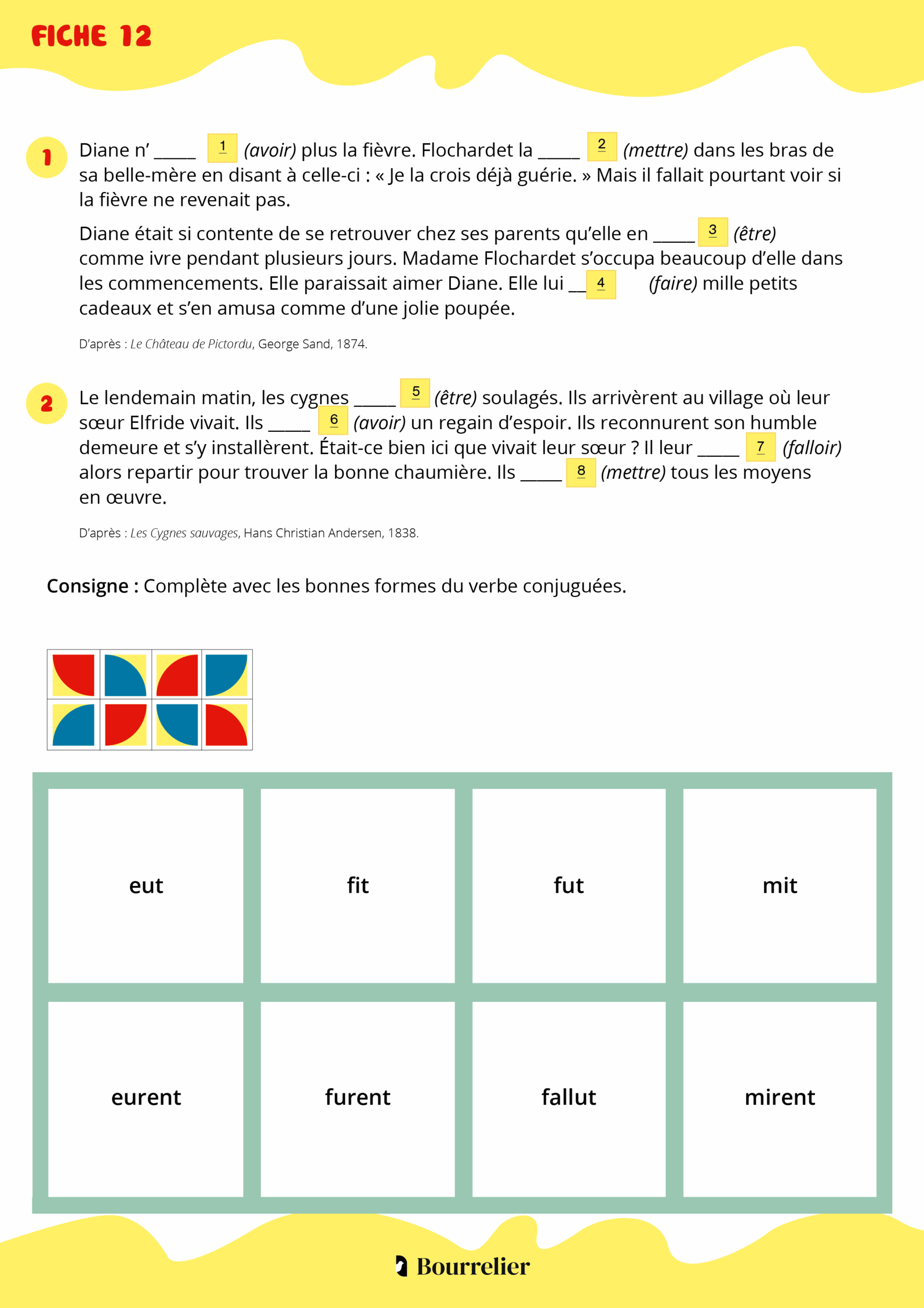 - Si le motif correspond au modèle présenté sur la fiche l’élève sait qu’il a réussi l’activité. Si le motif ne correspond pas, il repère les réponses incorrectes et se corrige tout seul.